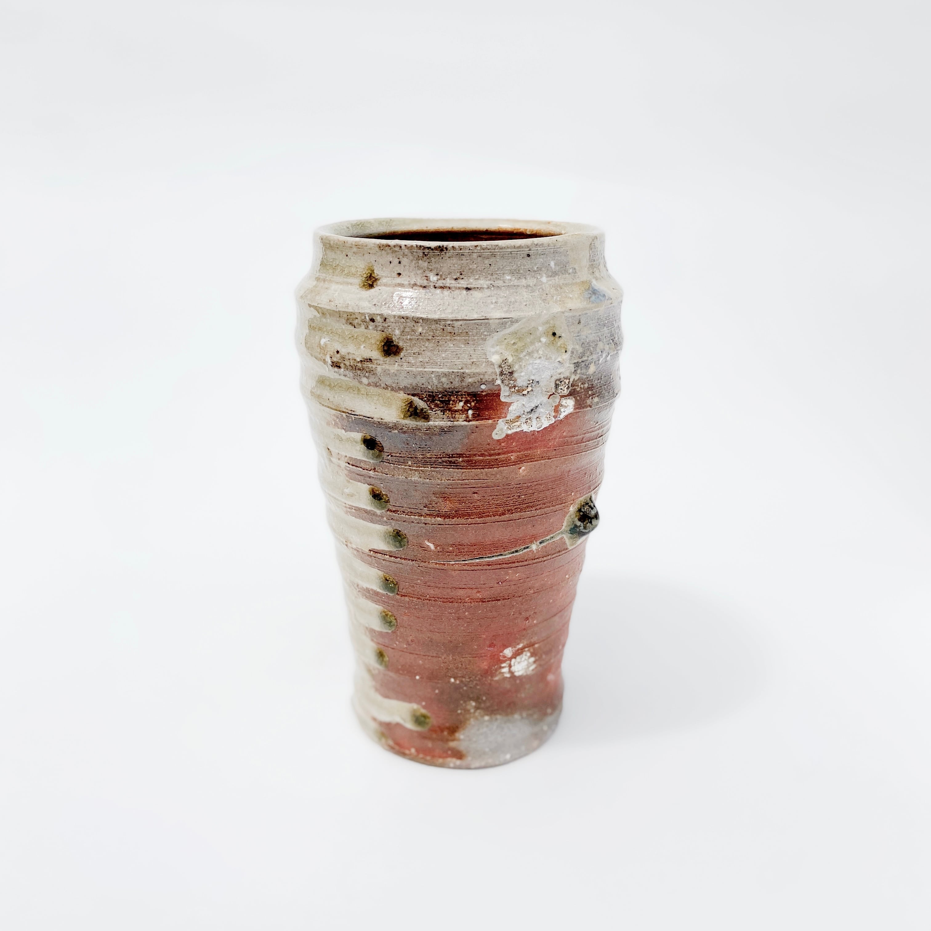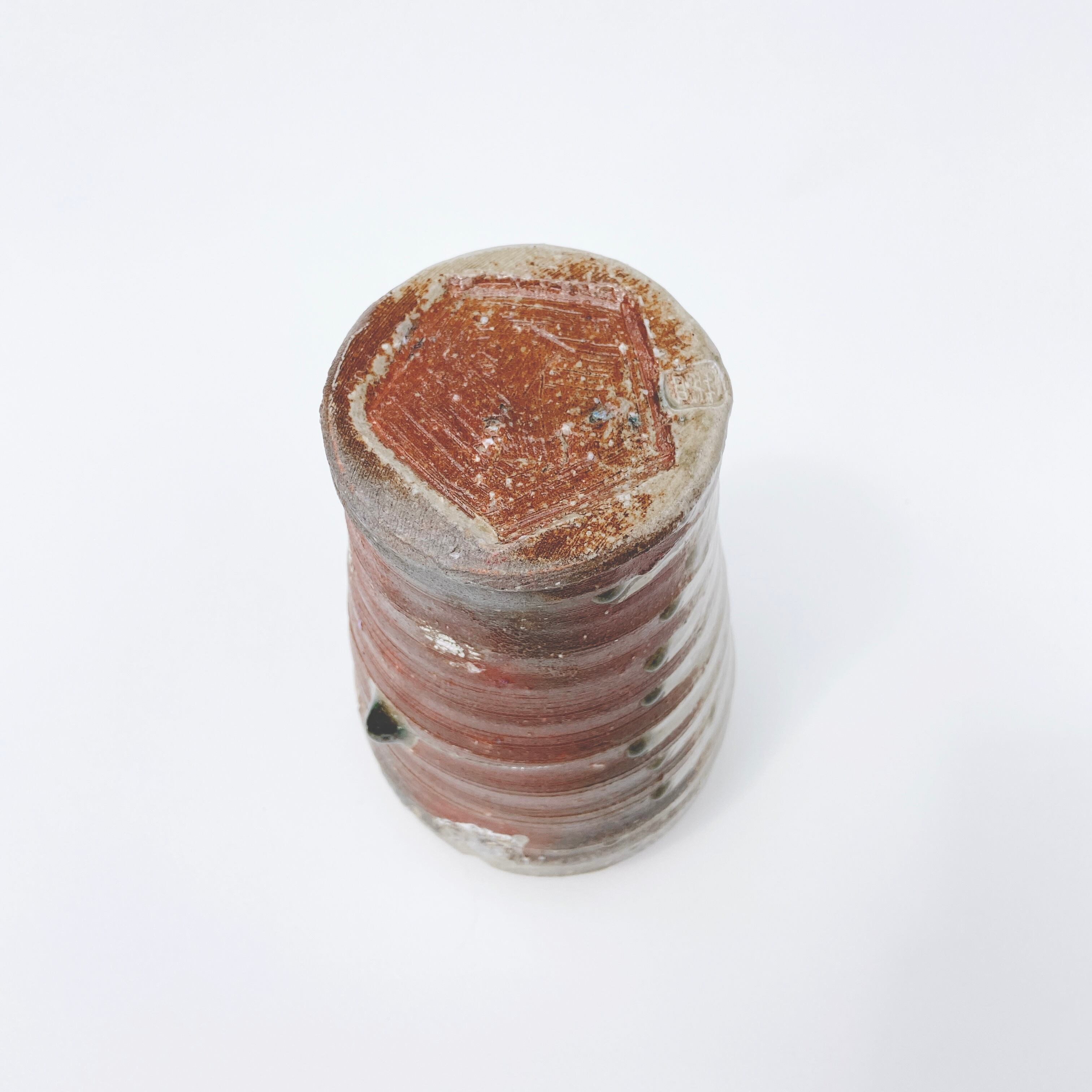 This piece embodies the full character of wood firing, resulting in a vase with a strong and substantial presence.