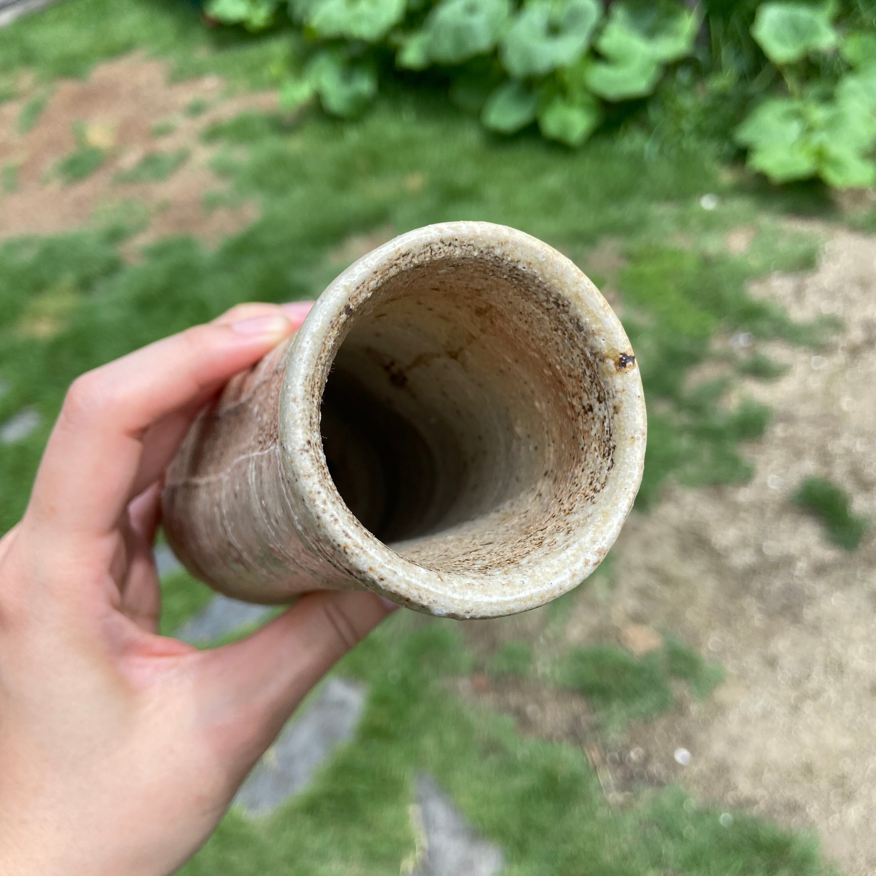 A flower vase fired in a traditional wood-fired kiln.
