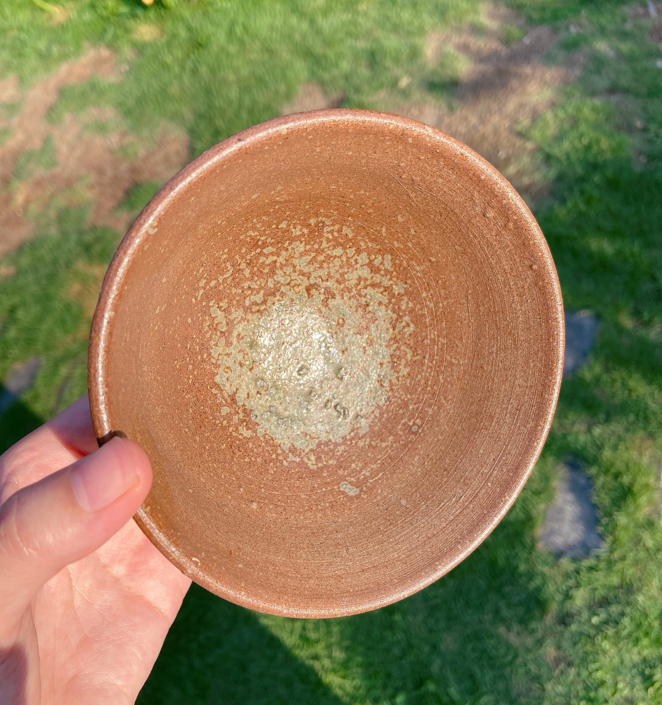 A rice bowl made from Bizen clay and fired in a traditional wood-fired kiln.