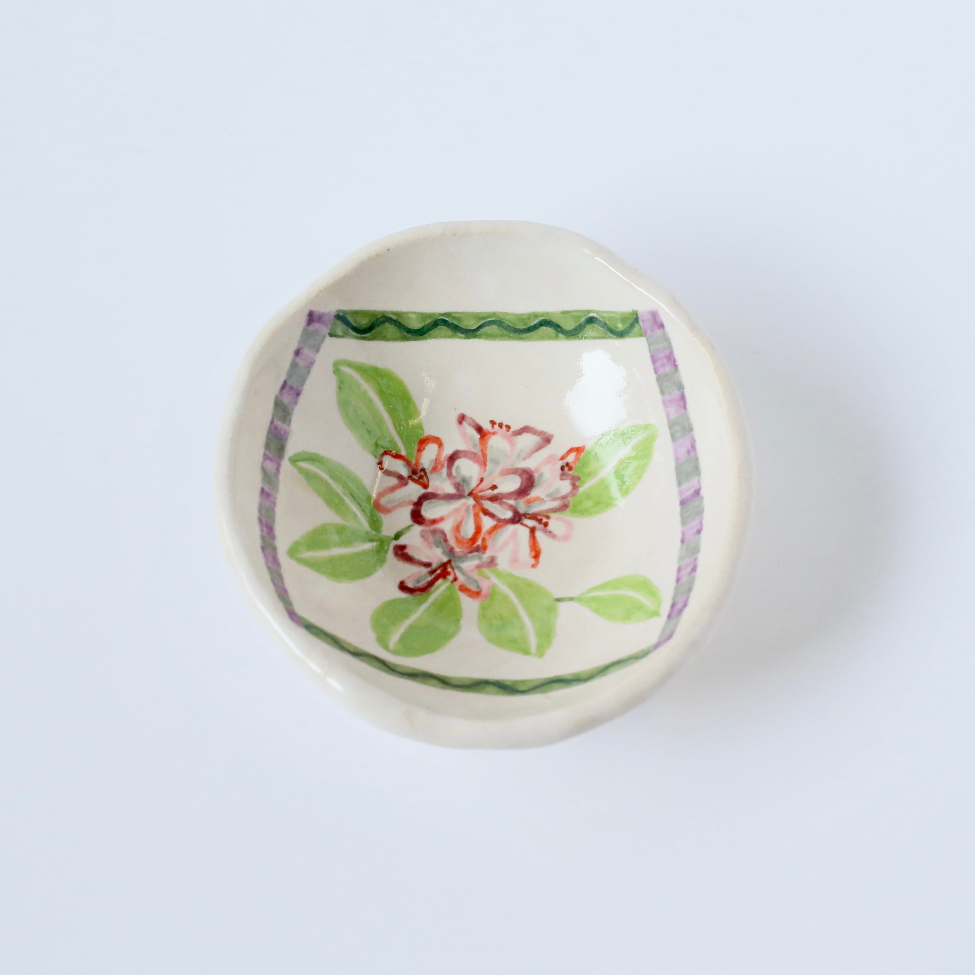 使い勝手の良い豆皿に、石楠花を描き入れました。