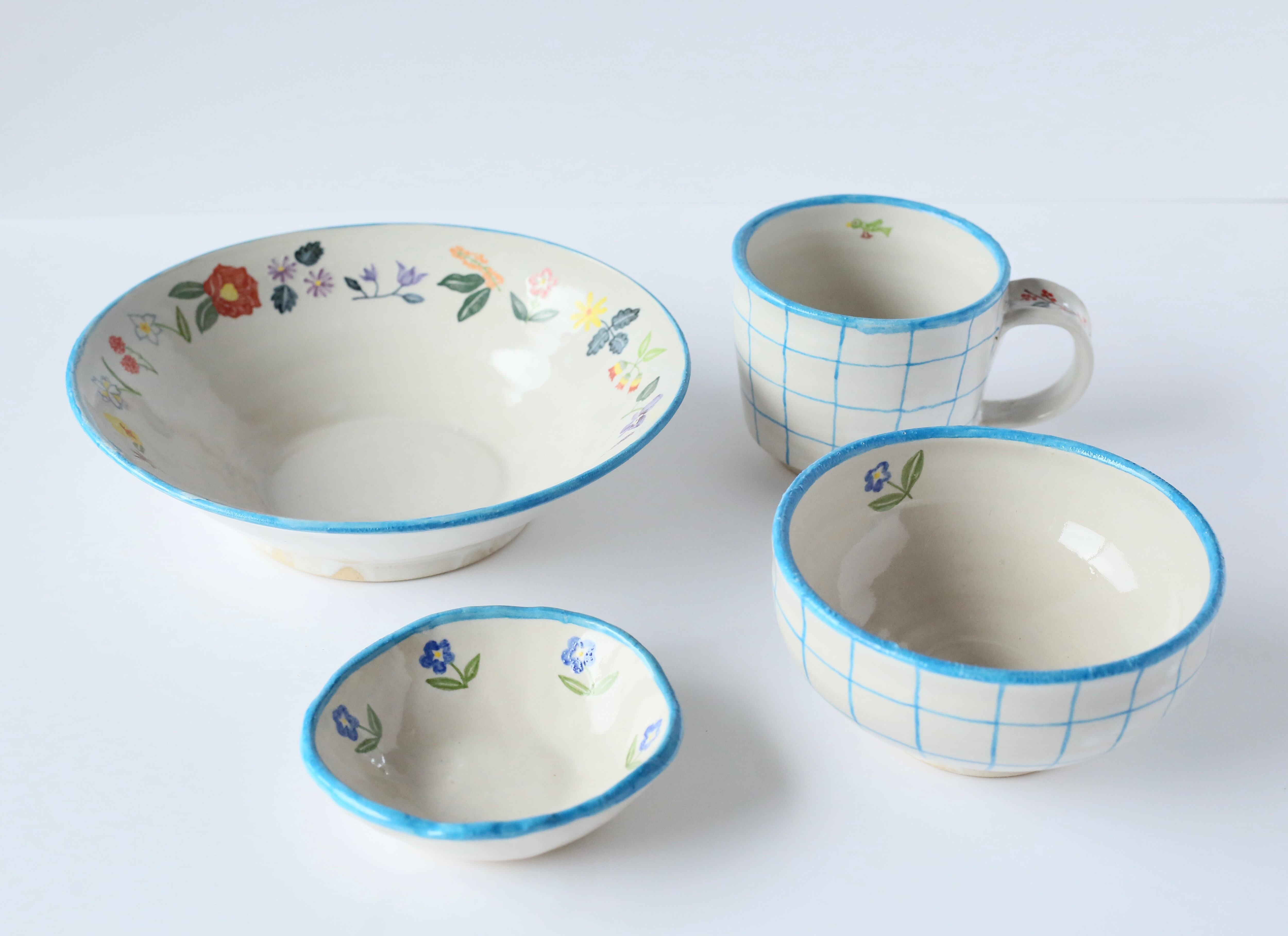 白い釉薬との重なりによって、軽やかな印象に仕上げました。