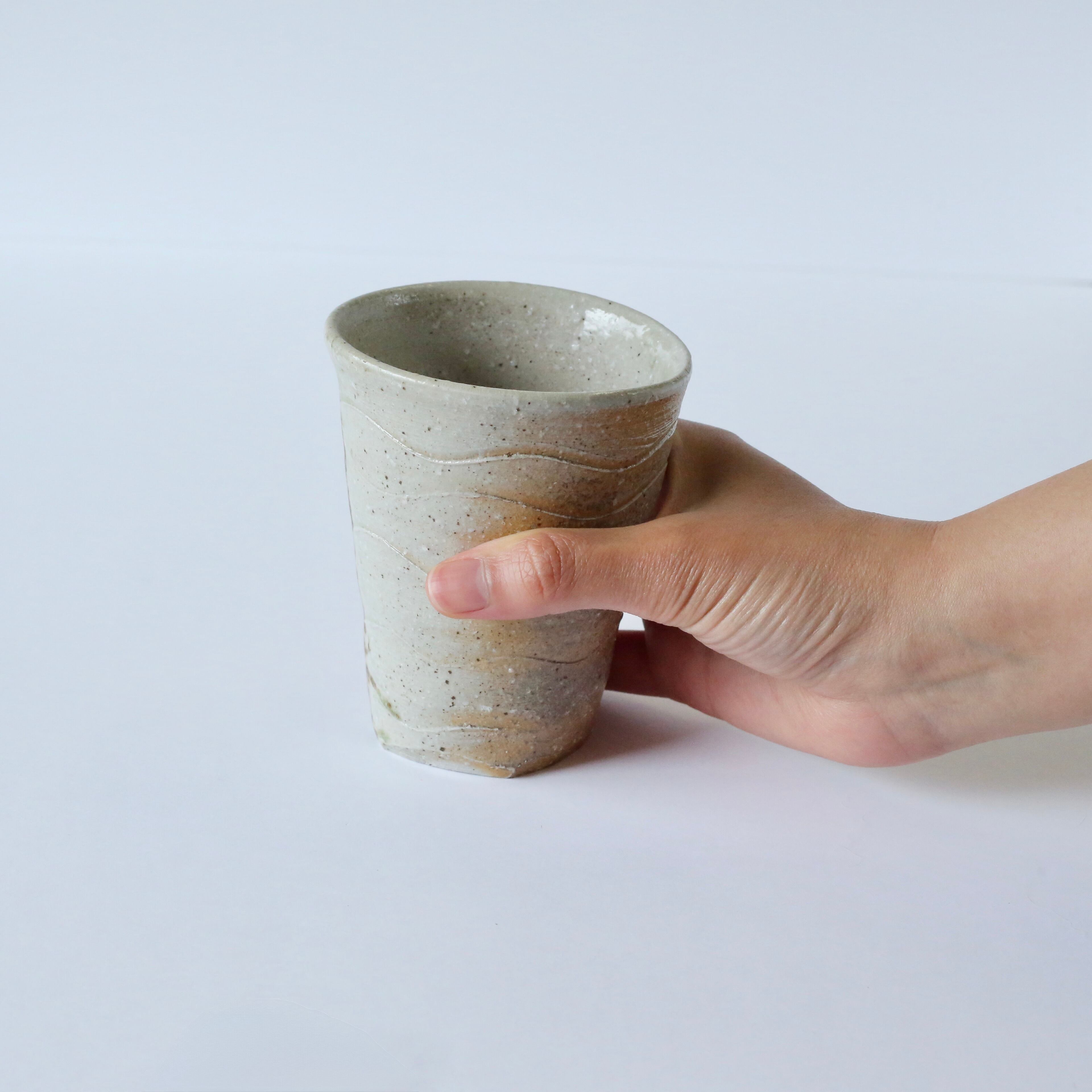 柔らかなグレーの色合いが印象的な薪窯のタンブラー。