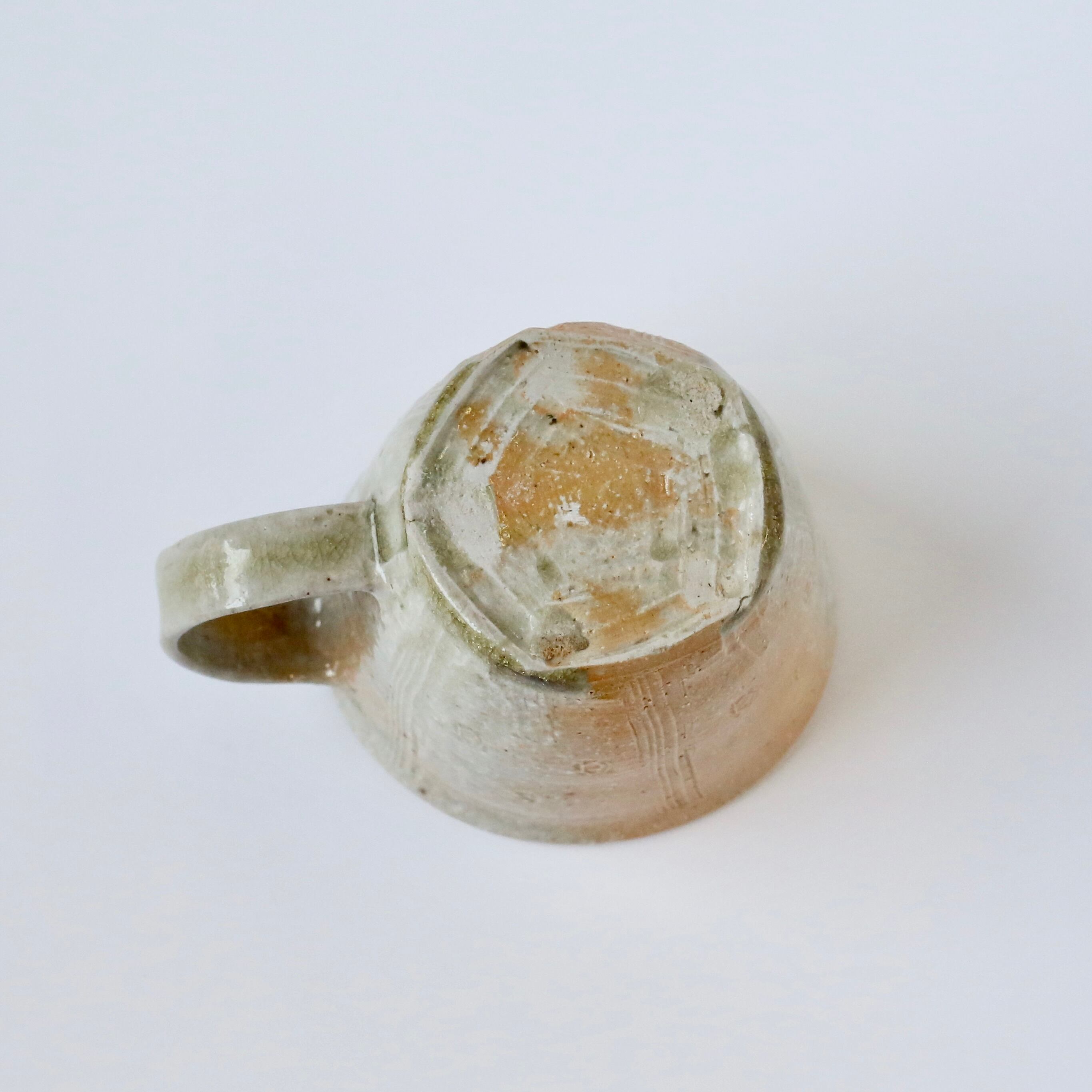The carved texture, shaped by the artist’s hand, adds a refined and tactile beauty, while the vivid natural ash glaze (bidoro) gives the mug a distinctive presence.