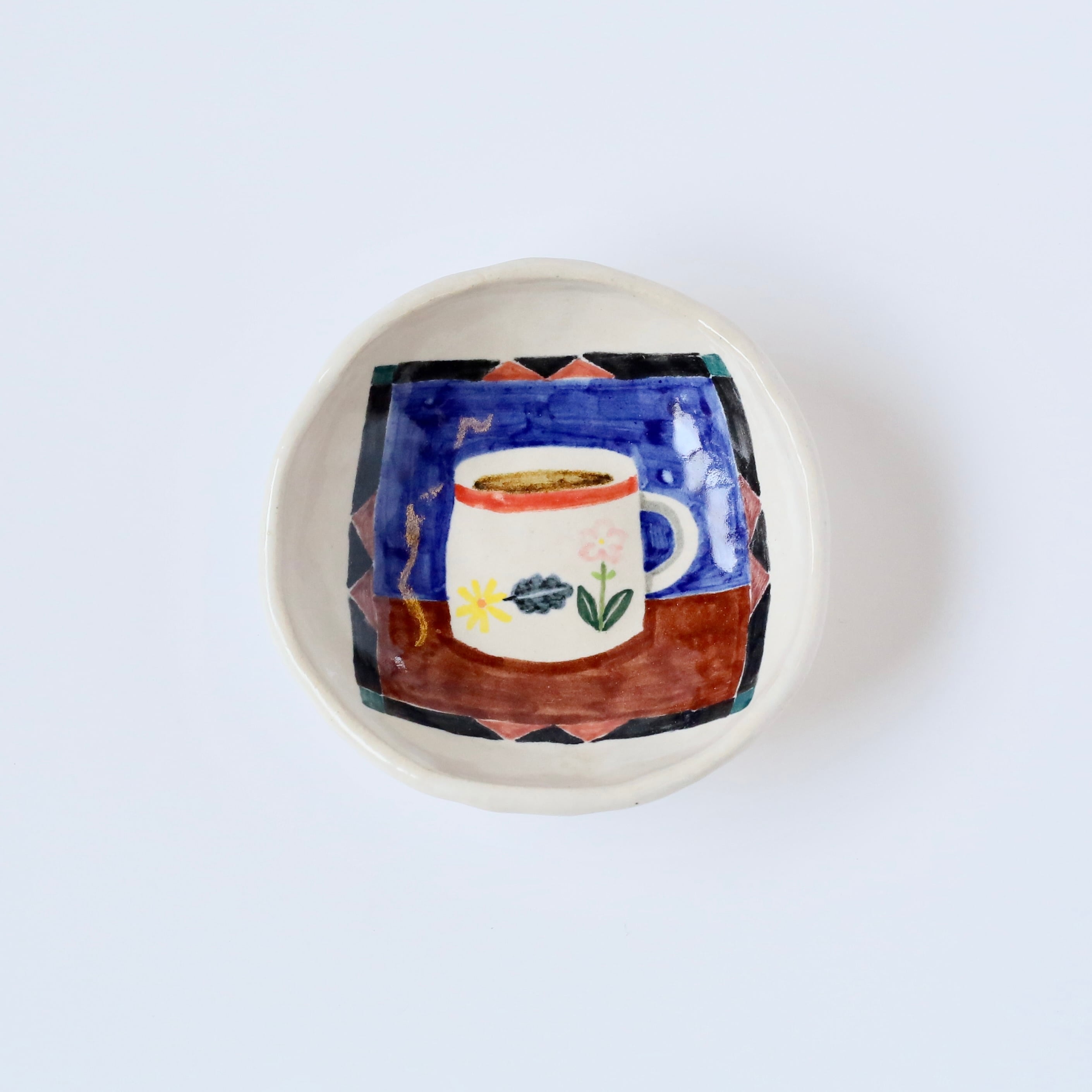 It is decorated with a hand-painted coffee cup motif, creating a warm and gentle impression.