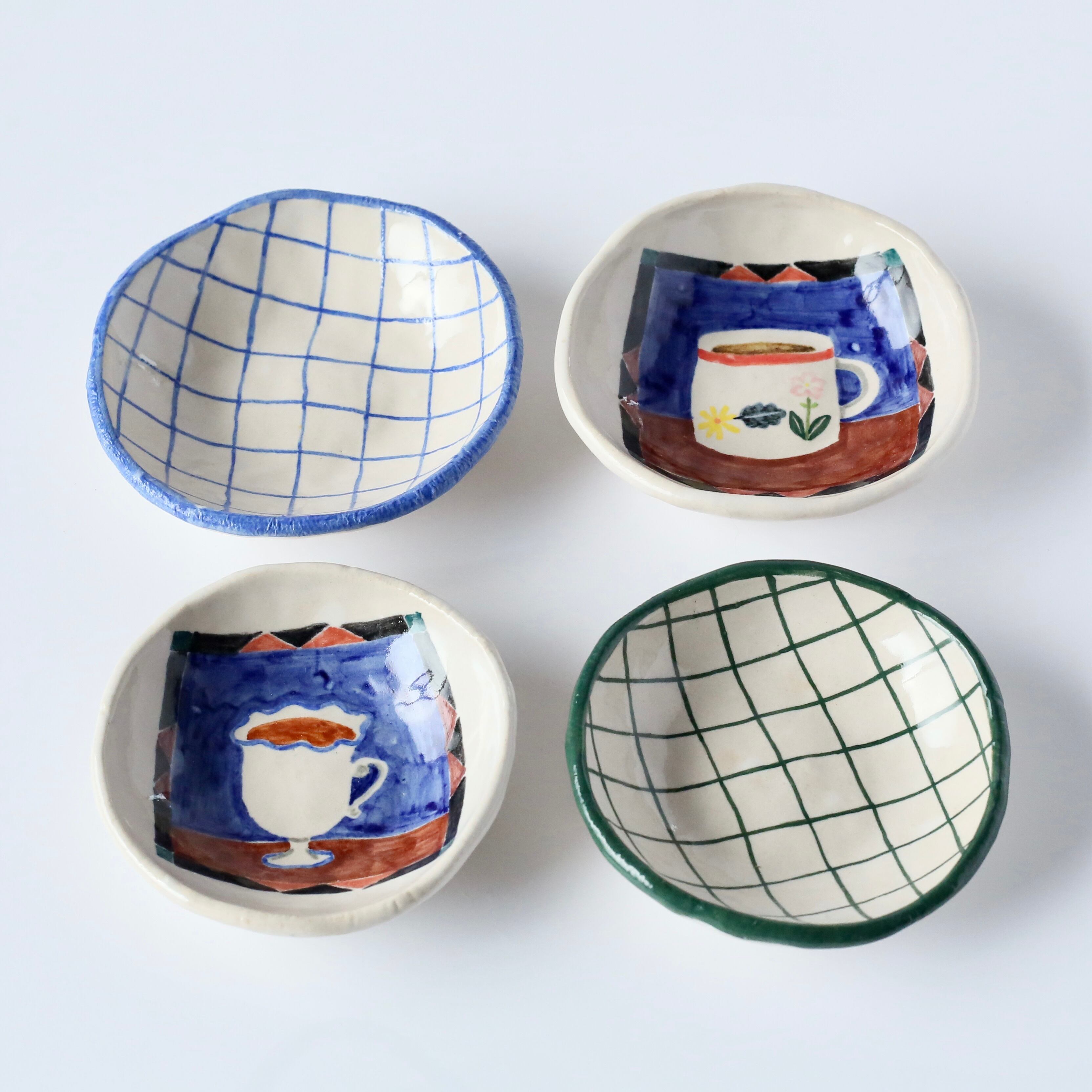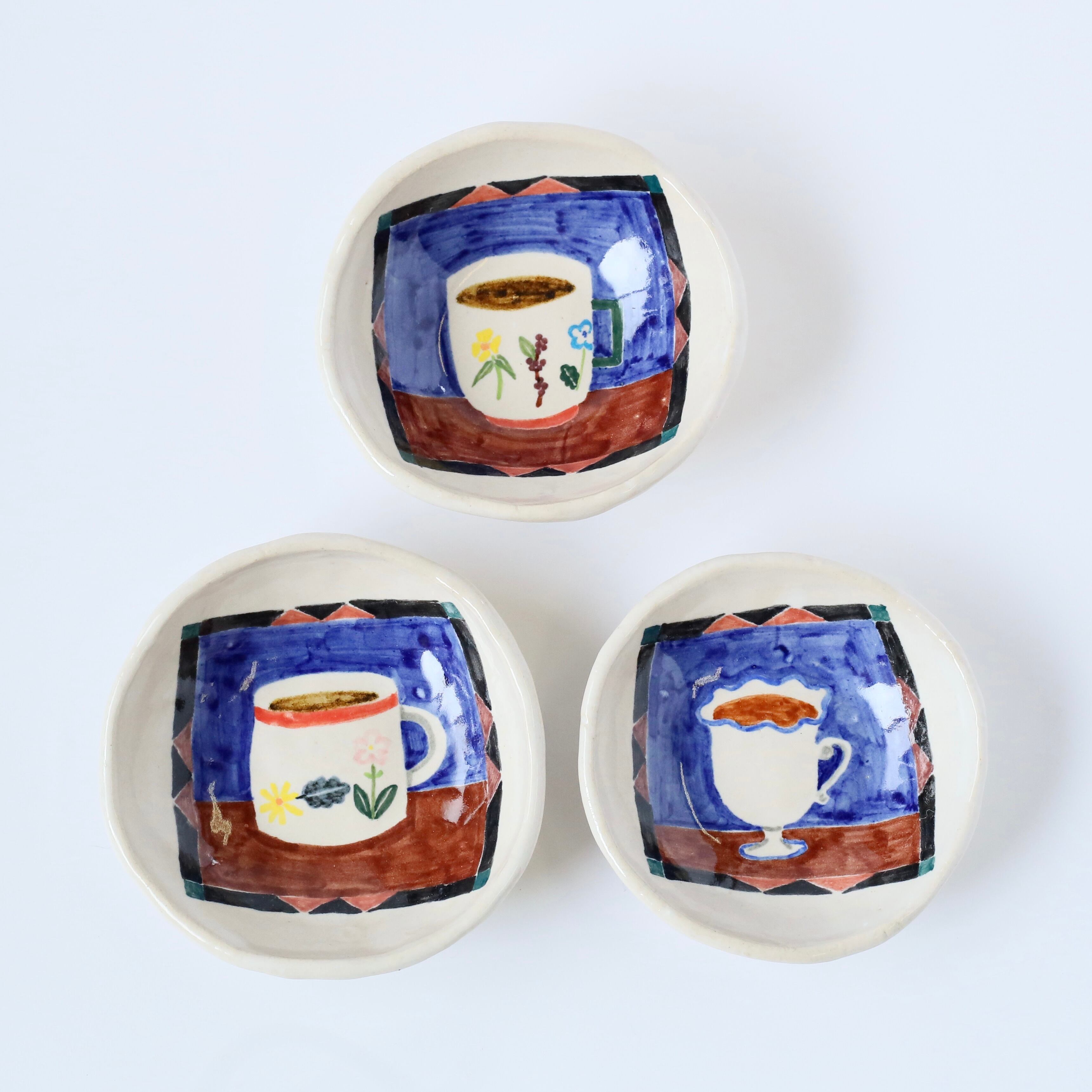 ちょっとレトロな、でもモダンさもあるカフェをイメージしたカップの絵付けをしました。