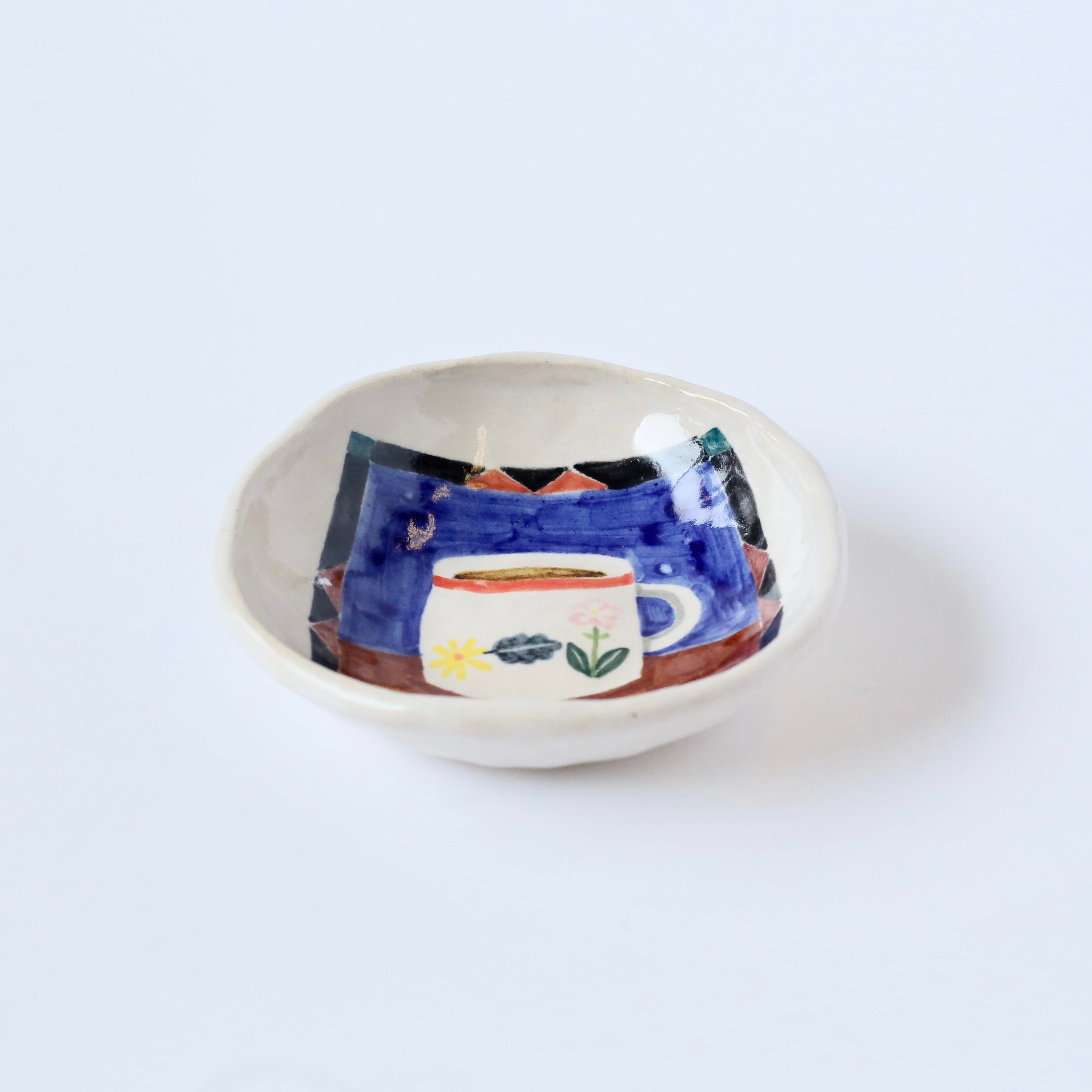 This hand-built small plate (mamezara) features a charming retro aesthetic.