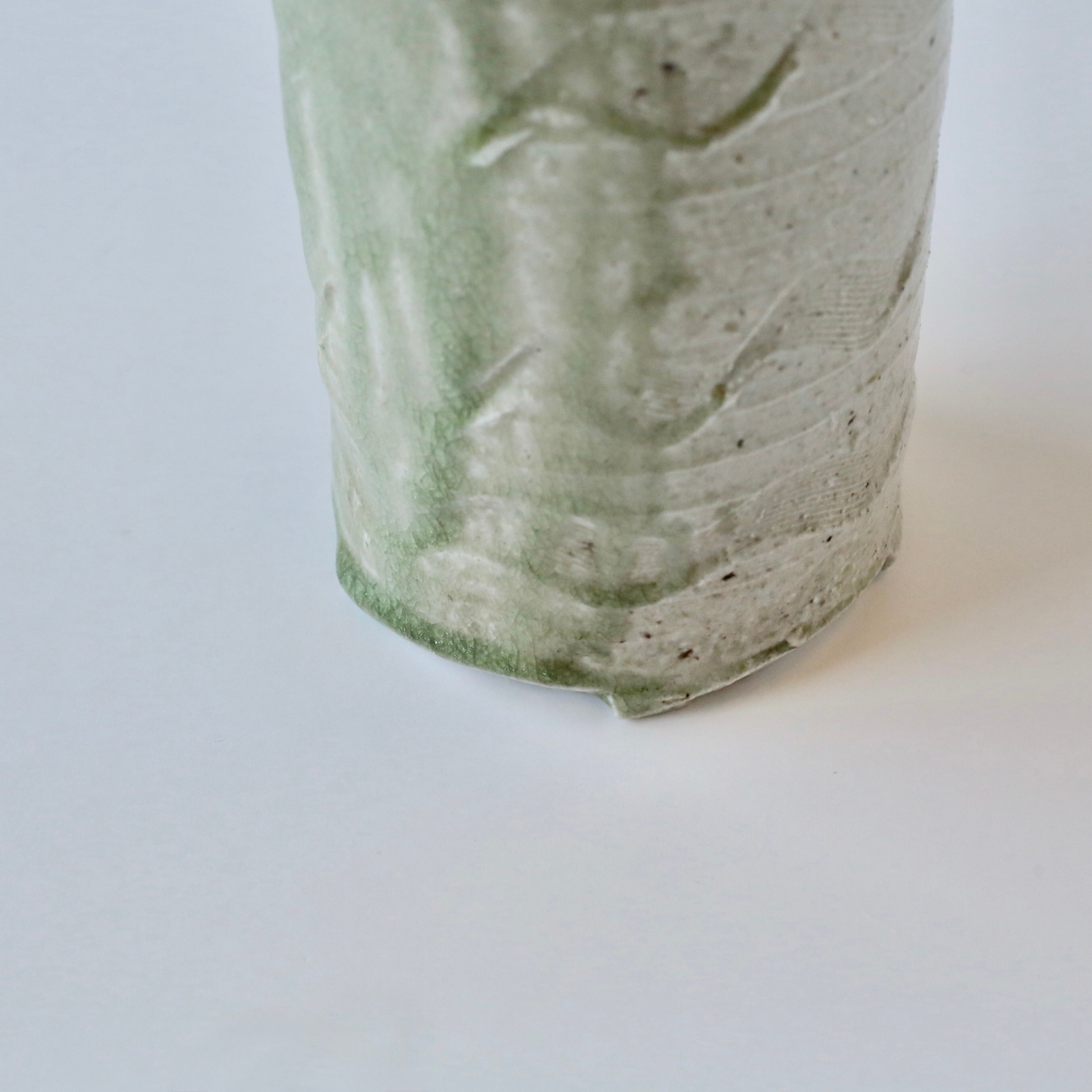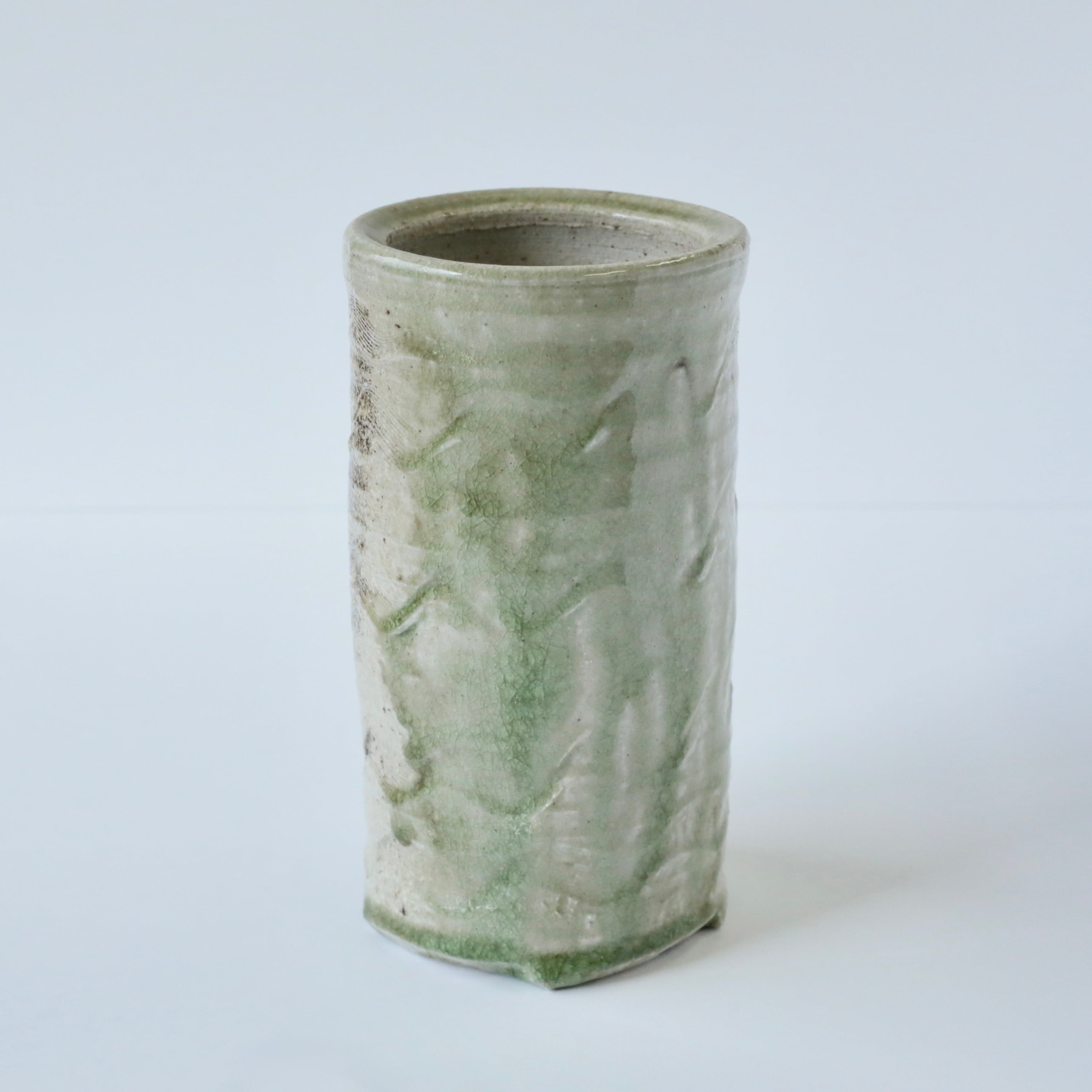 Featuring a larger cylindrical form, the surface is richly covered with vivid, glassy bidoro effects.