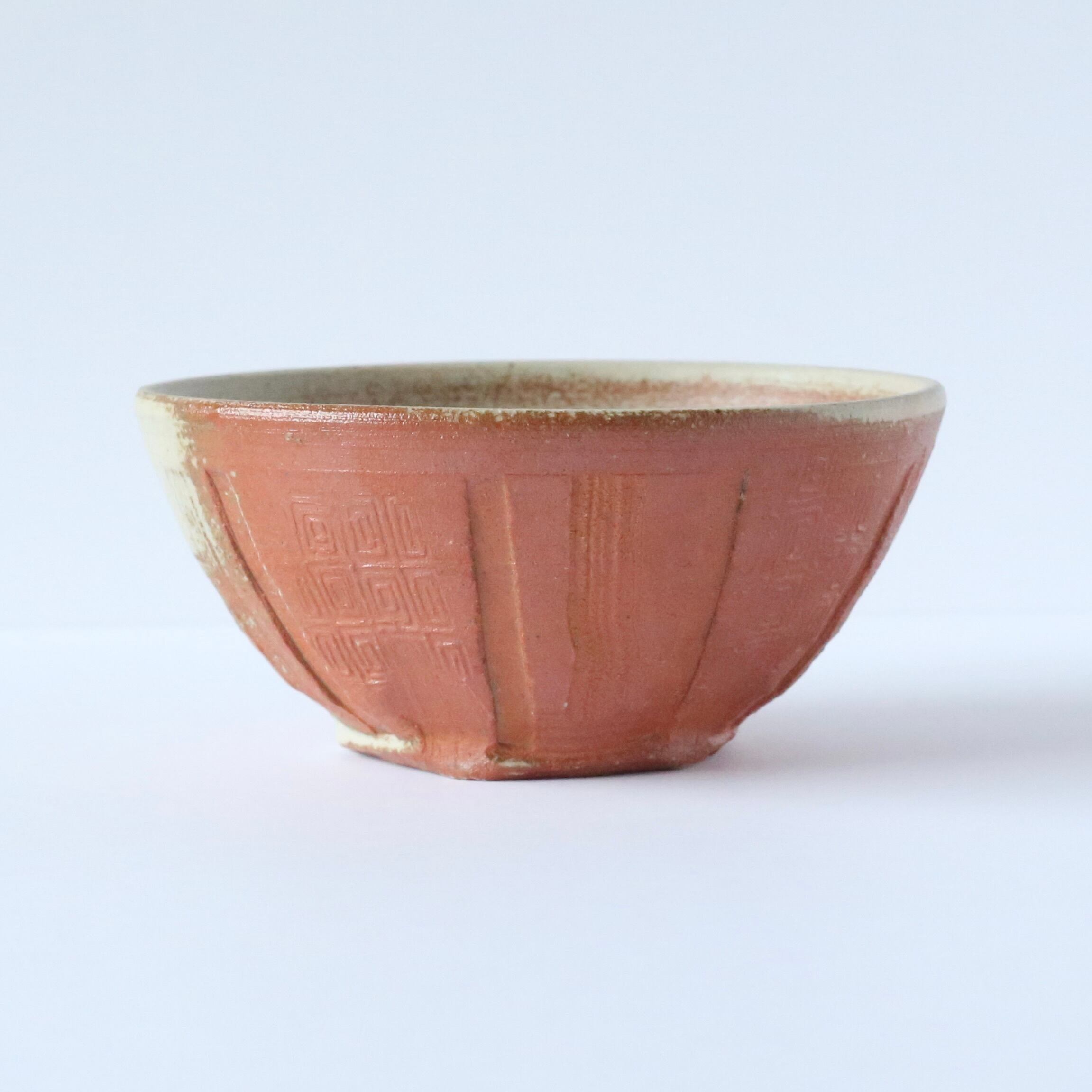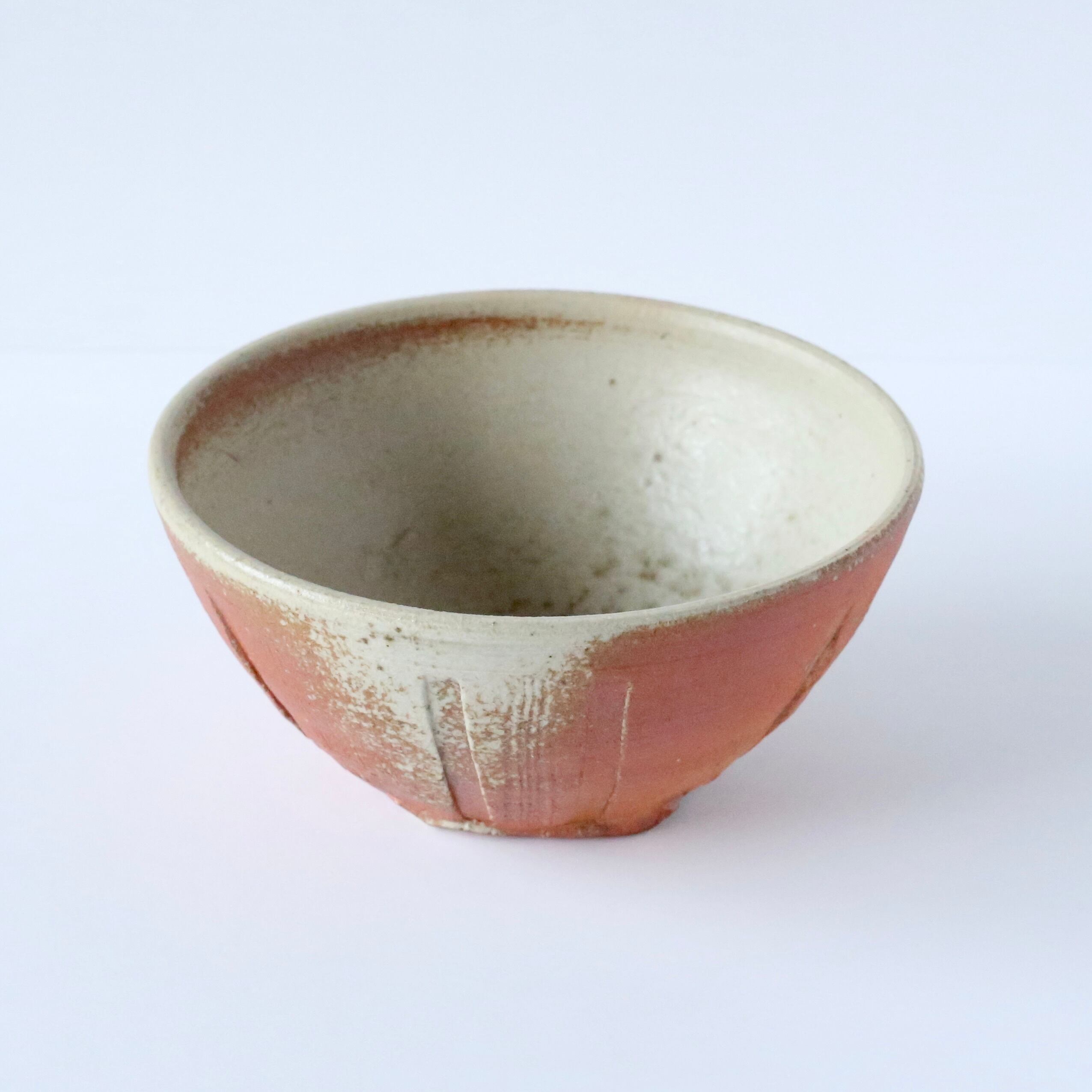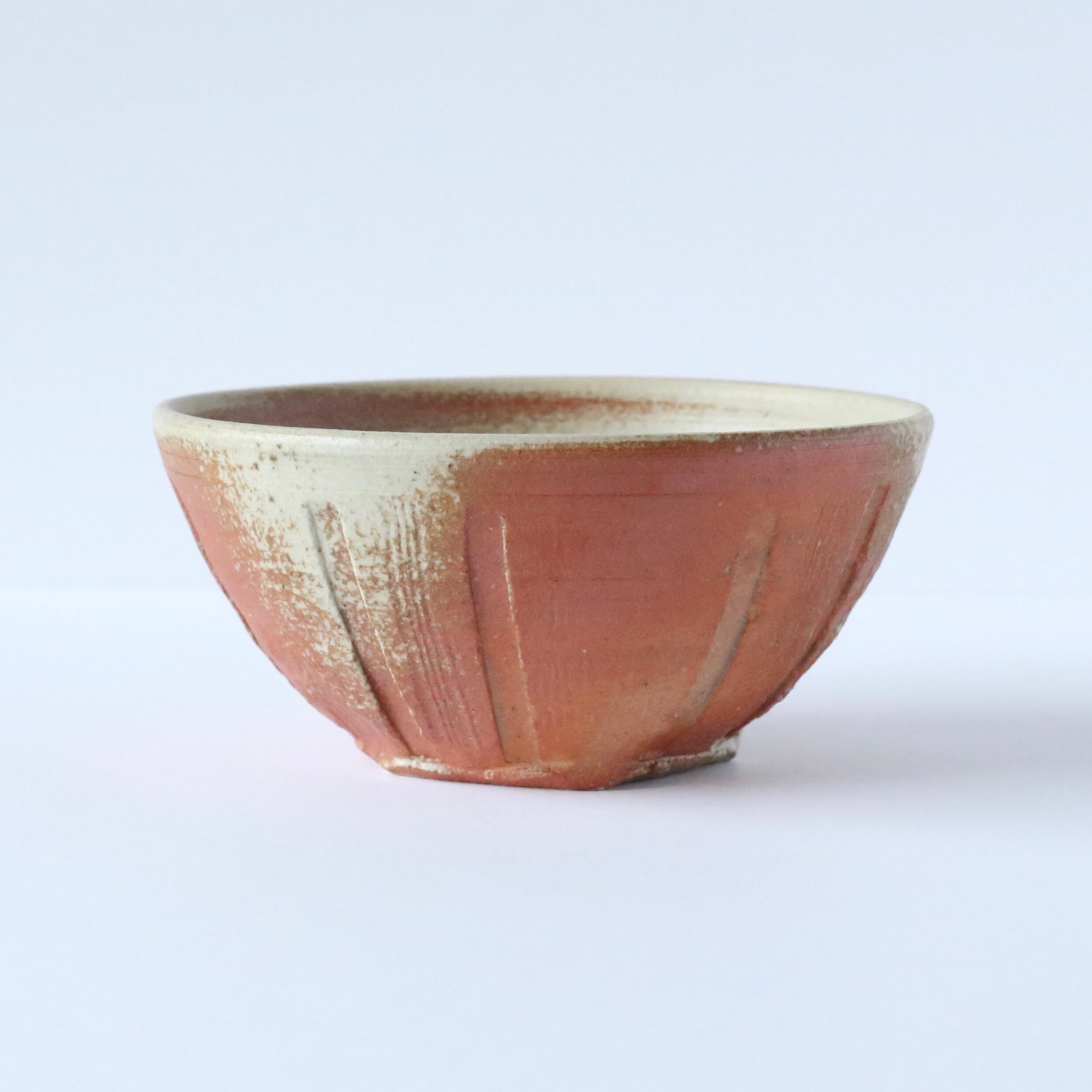 ぱっと見はシンプルな赤いお茶碗ですが、手にとってじっくり見ると手仕事や薪窯の特徴を沢山垣間見ることができます。