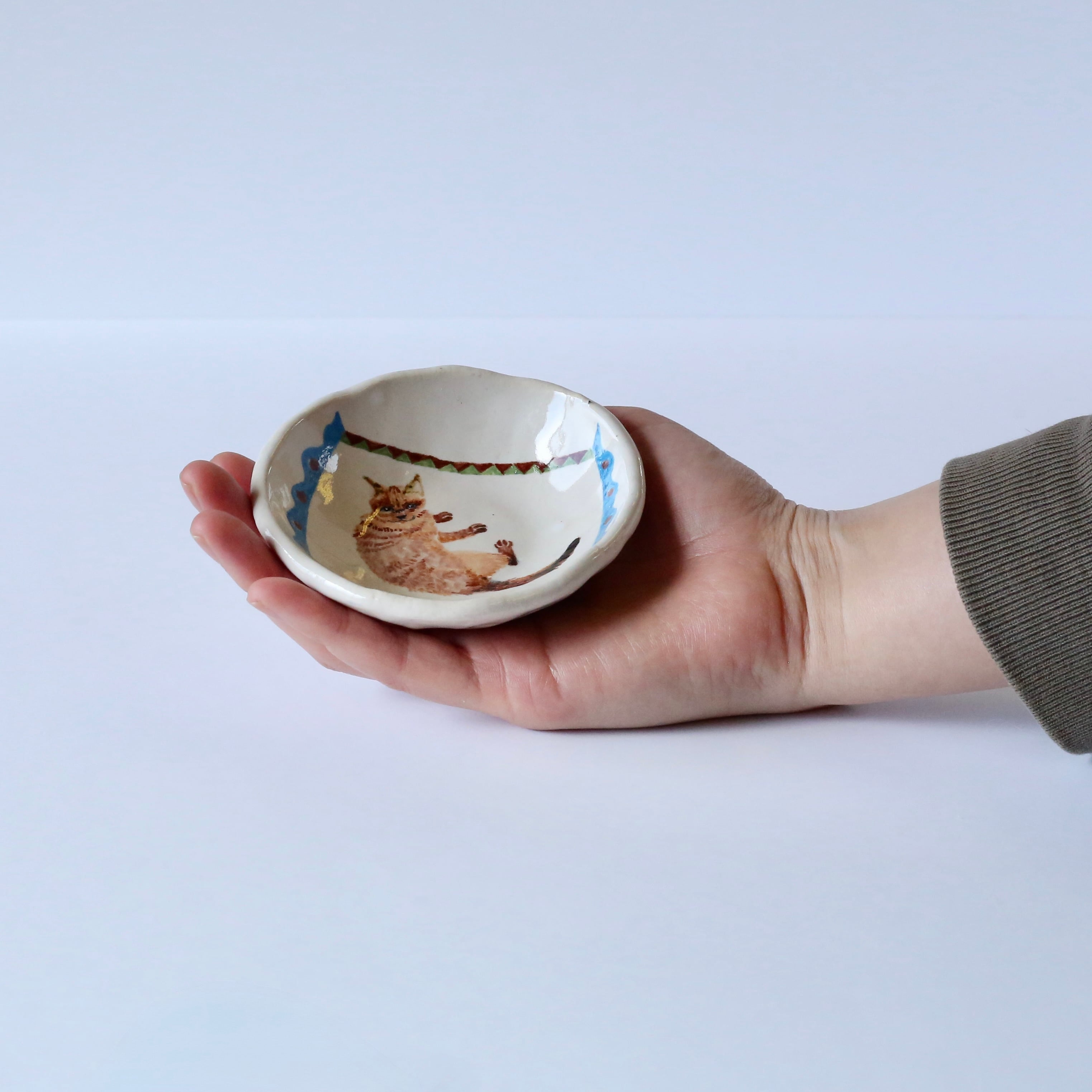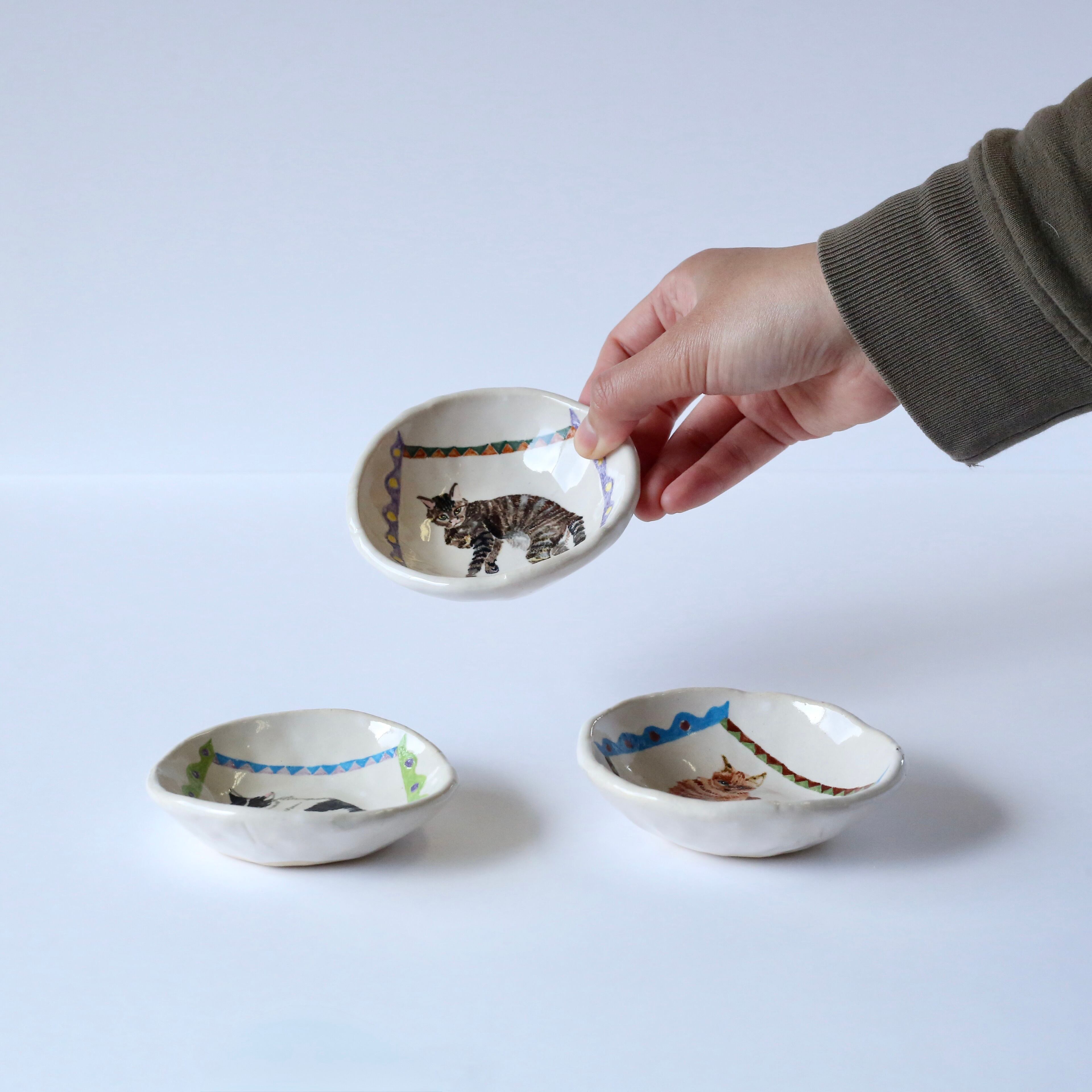 使い勝手の良い豆皿に、猫の龍之介を描きました。