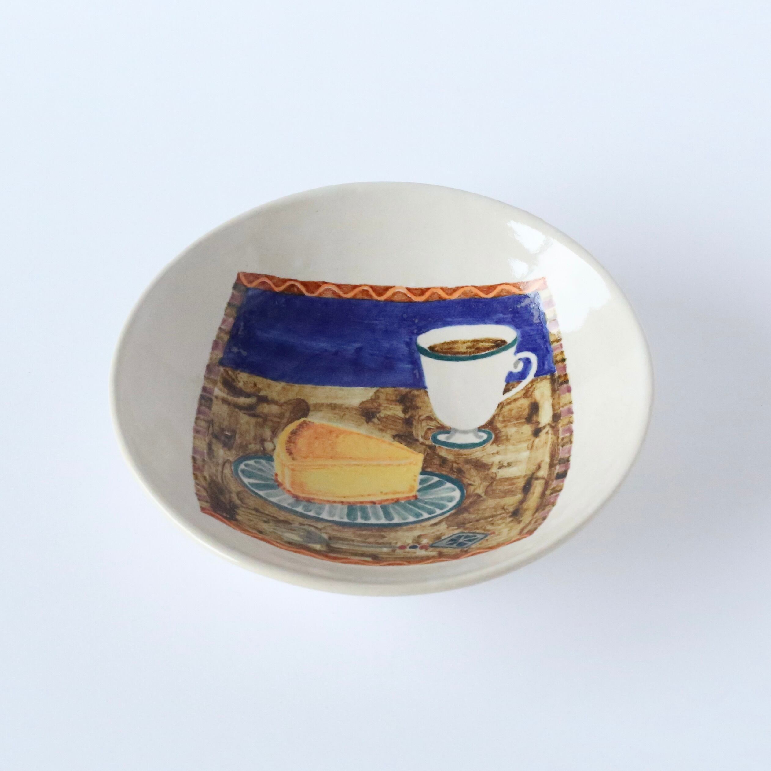 純喫茶のような雰囲気の中に、ニューヨーク・チーズケーキの絵付けを施しました。