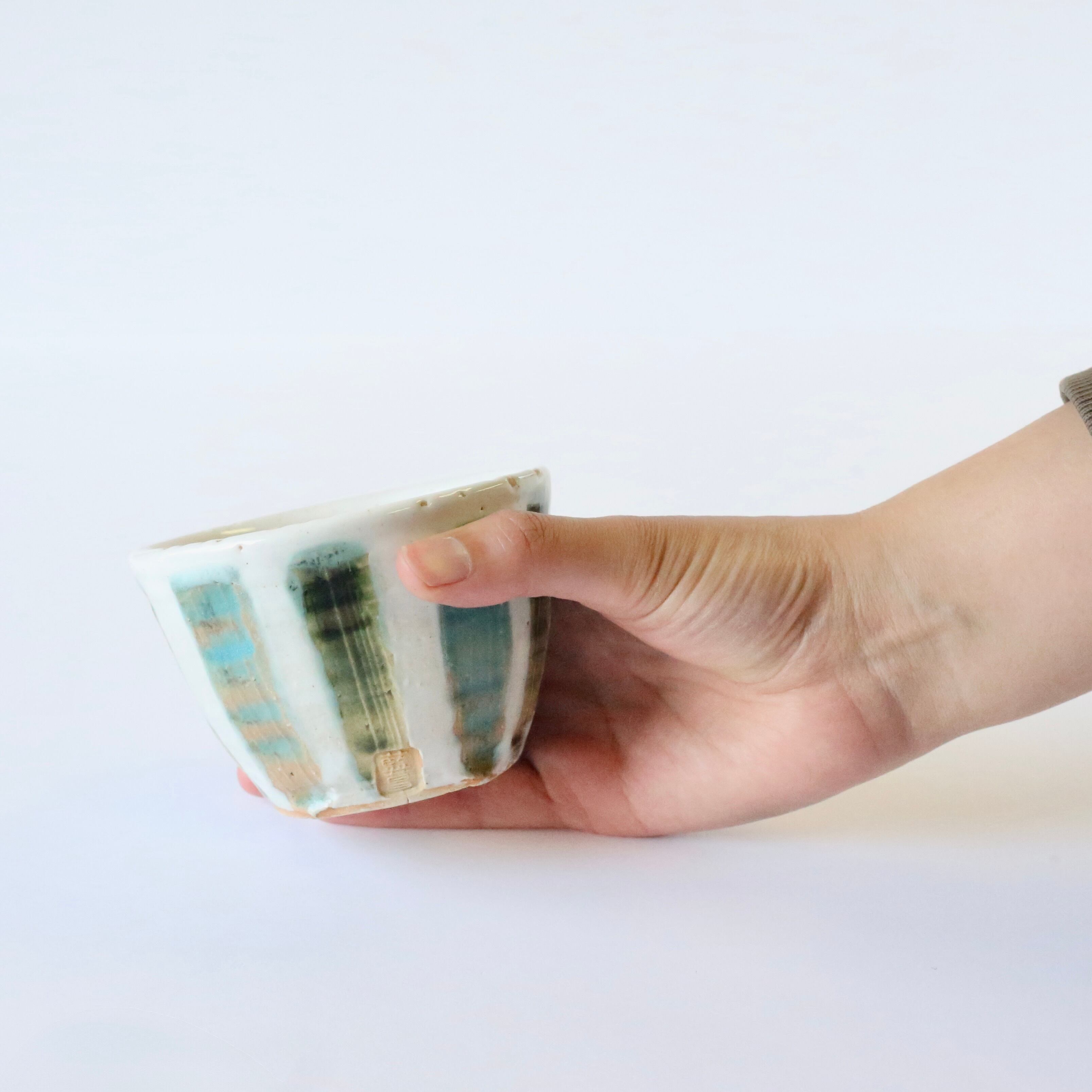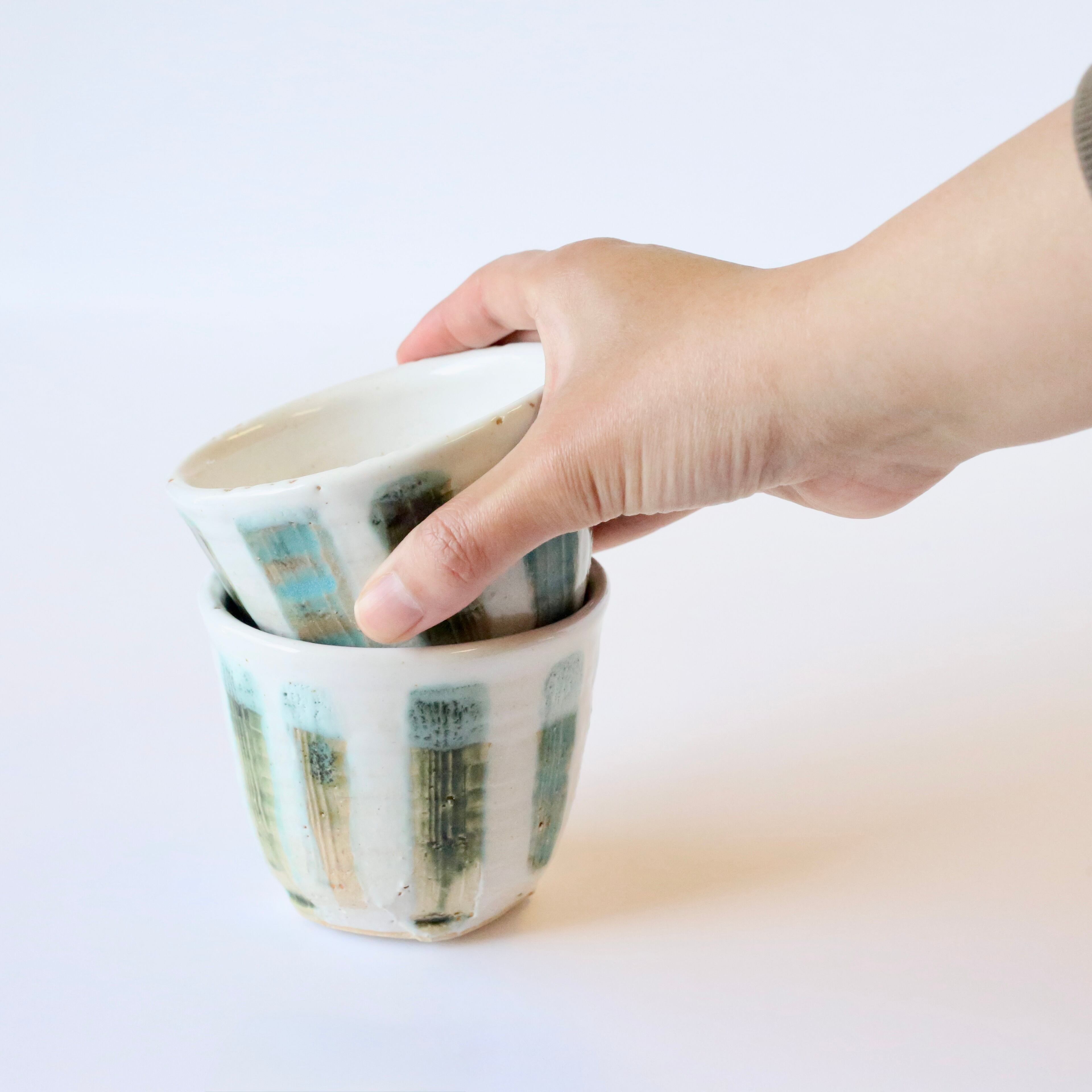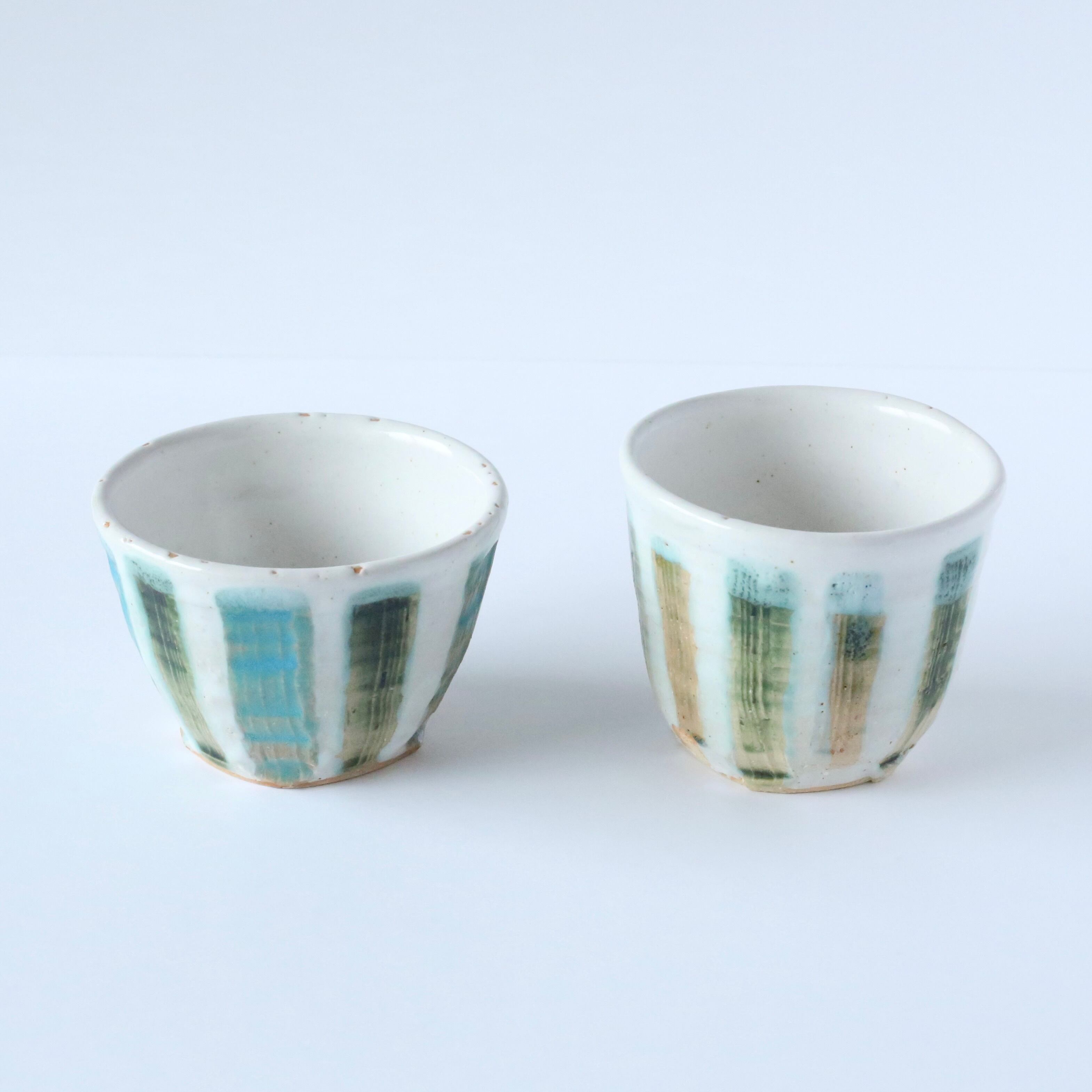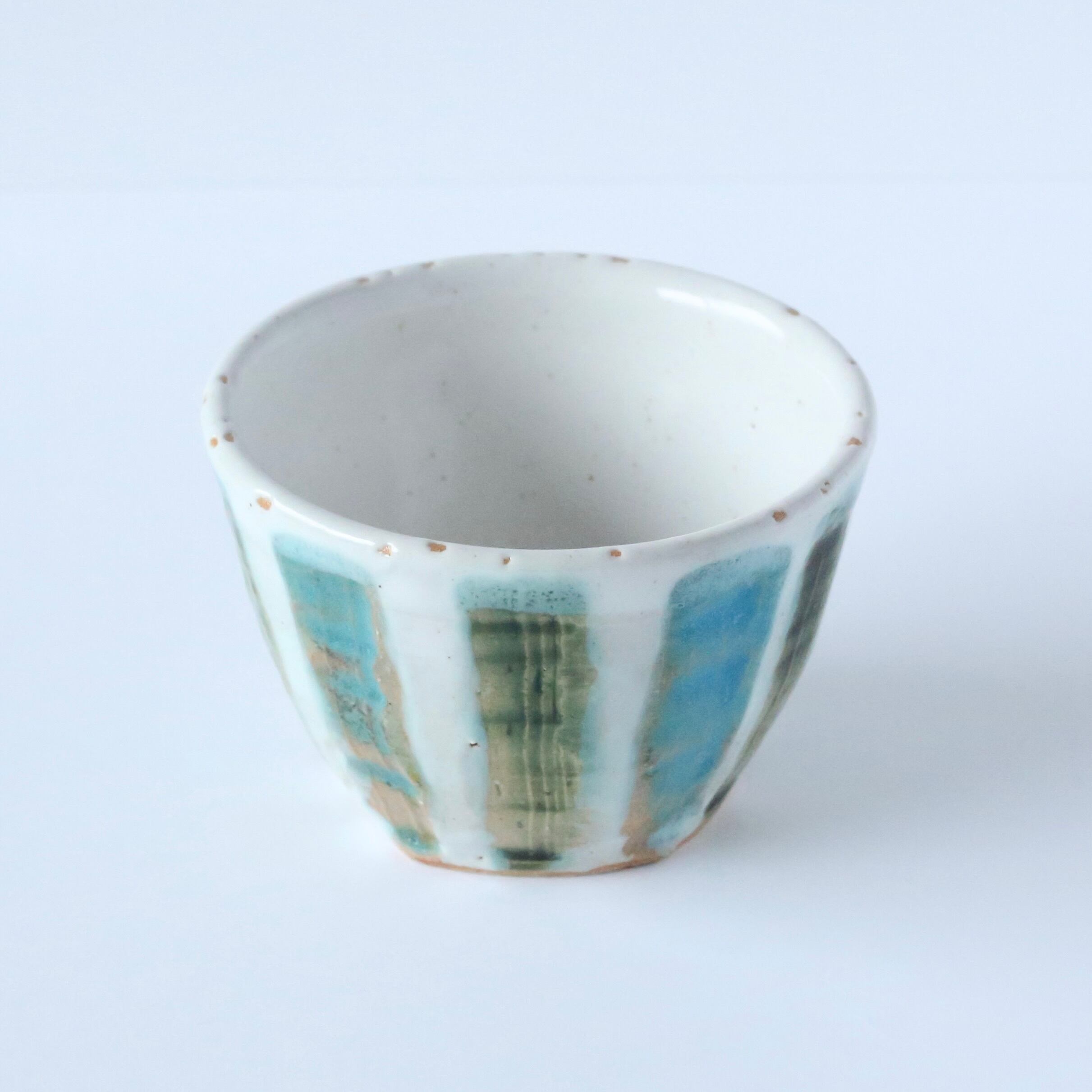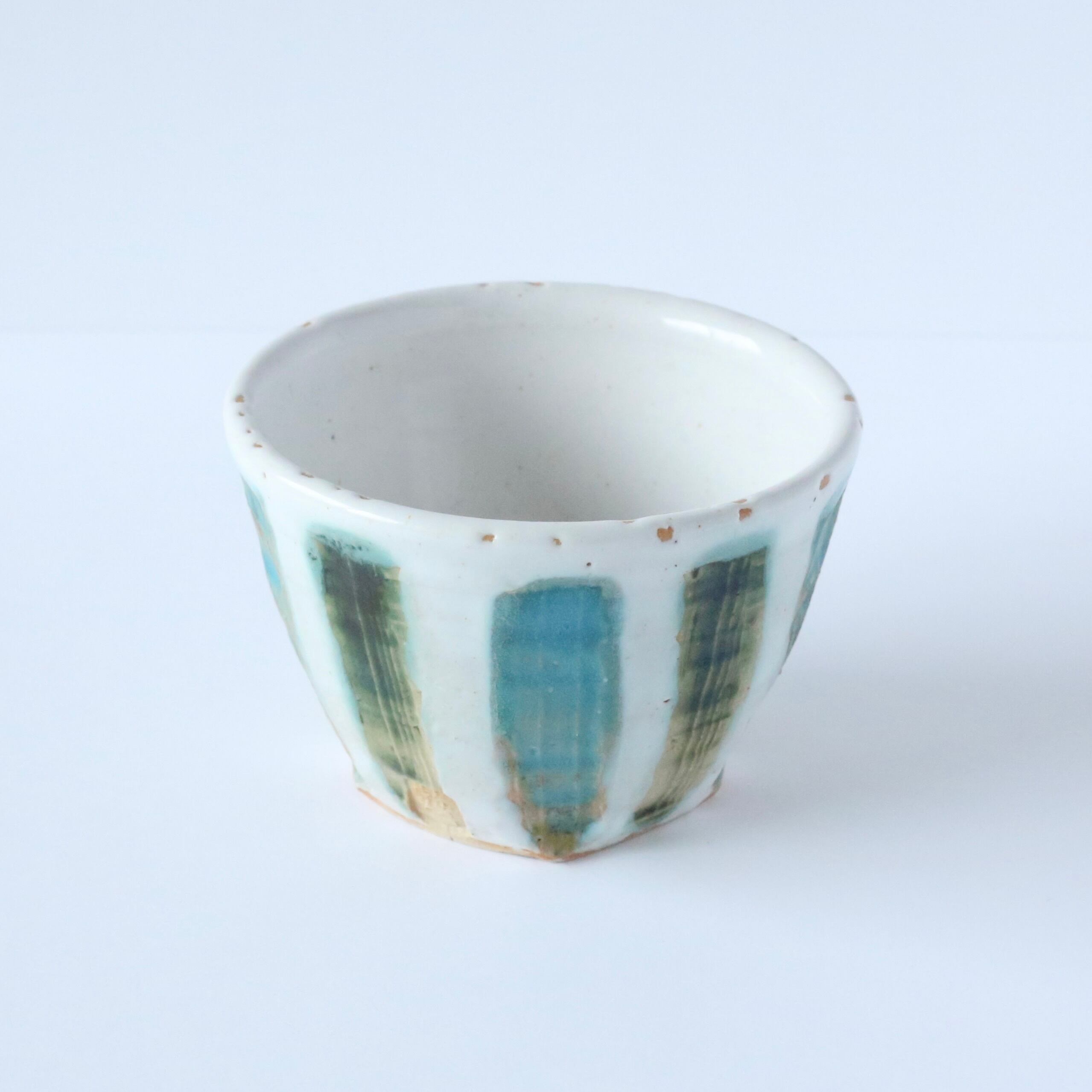 白の釉薬と重なった部分も美しく、湯呑みの土味もところどころ感じられます。