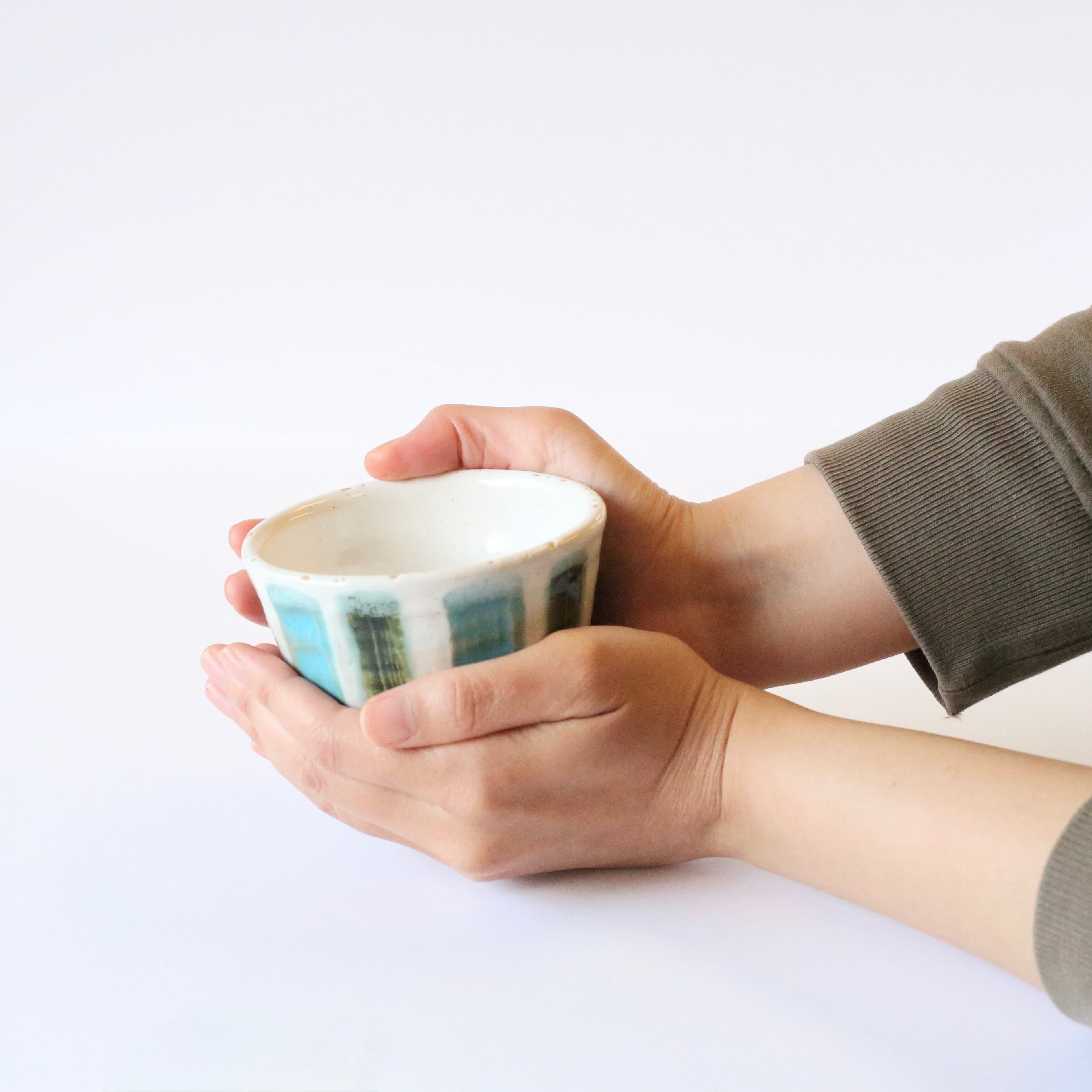 ブルーとホワイトのコントラストが目を惹く、洒落た湯呑みです。